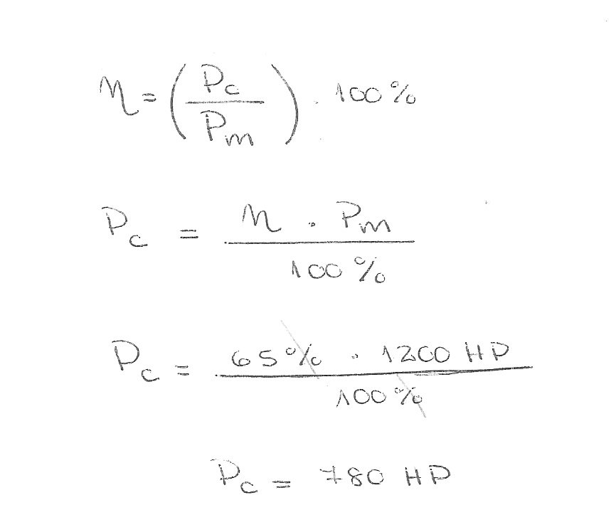 10) Cuánto valdrá la potencia consumida de un barco de 1200 HP, si su rendimiento es del 65%.