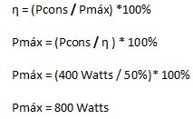 η = (Pcons / Pmáx) . 100%